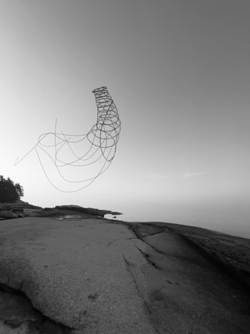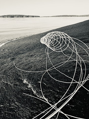 In 2023 I was fortunate to take a sculputral basketry workshop at Haystack Mountain School of Crafts. It changed the direction of my art practice in lasting ways. I continue to work with reed, and considerate one of my primary mediums. I love to toss the baskets into the air, or into the water nearest me--and then just observe what happens.